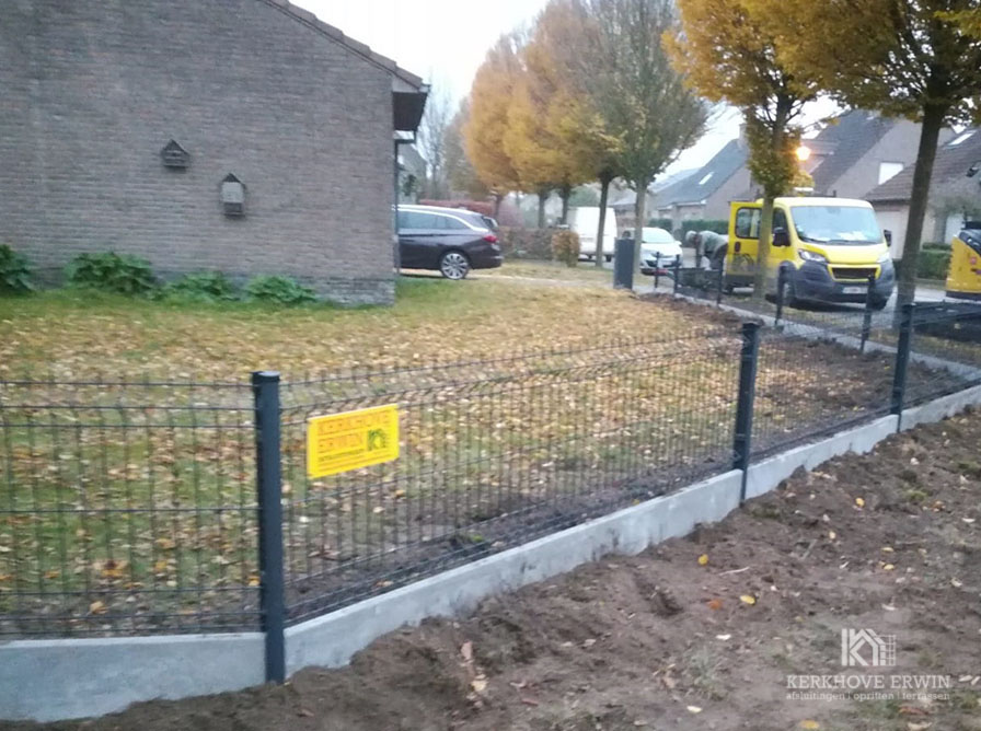 Uiteraard ook mogelijk met een betonplaat onderaan voor de perfecte afwerking. Ook hier worden alle palen ter plaatse in de beton gestort.